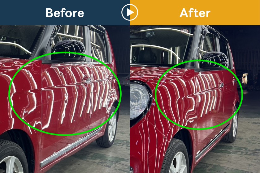 デントリペアで修理した雹害車両のビフォーアフター画像です。